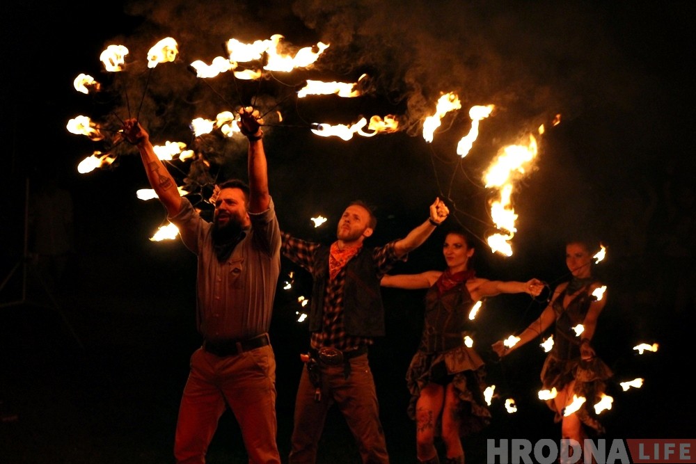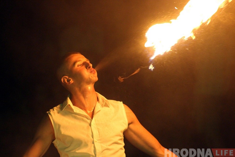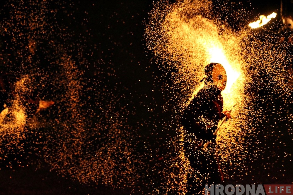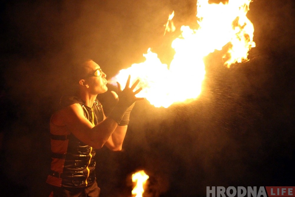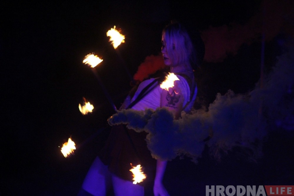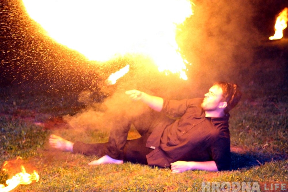 Першы дзень фестывалю вулічных мастацтваў завяршыла паўтарыгадзіннае фаер-шоў у парку Жылібера. Выступалі прафесіяналы вогненнага жанру з усёй Беларусі і Украіны.
