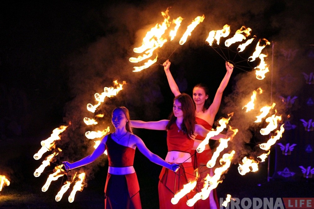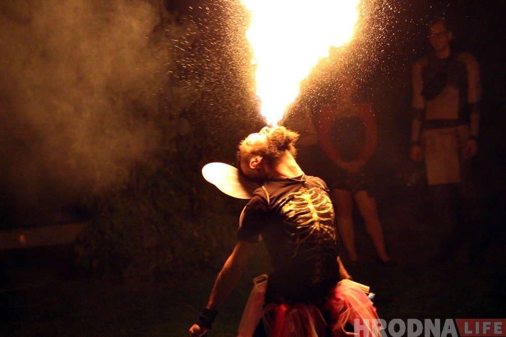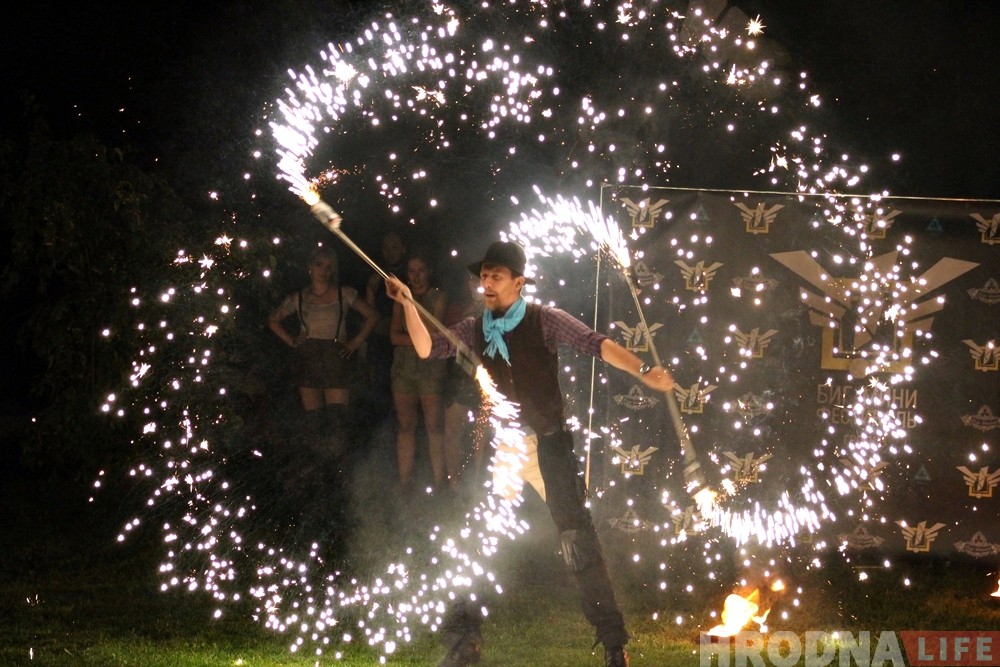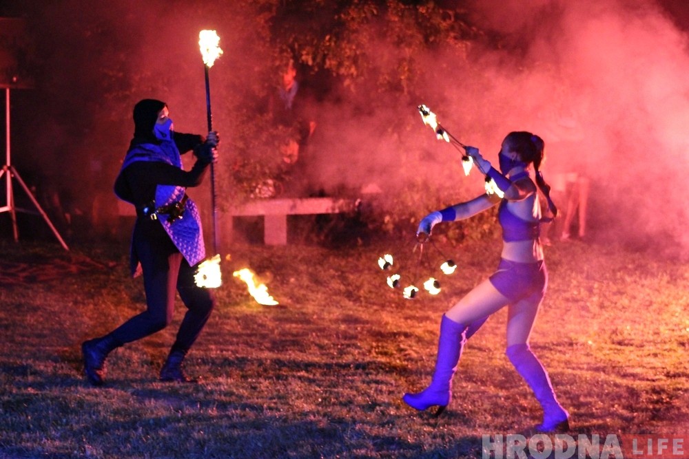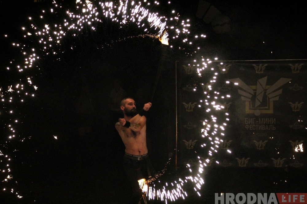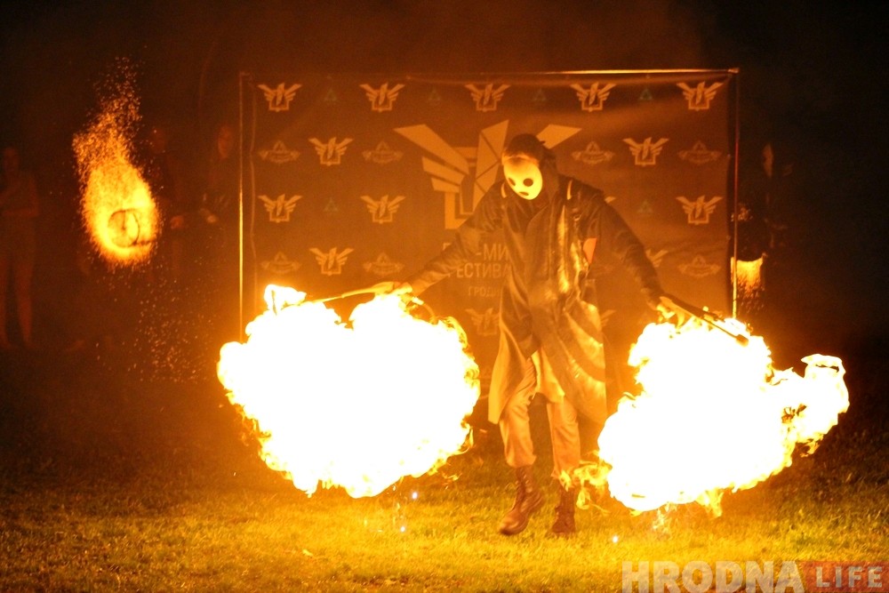 Першы дзень фестывалю вулічных мастацтваў завяршыла паўтарыгадзіннае фаер-шоў у парку Жылібера. Выступалі прафесіяналы вогненнага жанру з усёй Беларусі і Украіны.