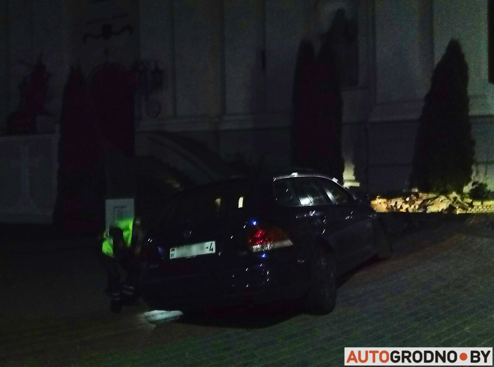 Ноччу паблізу Фарнага касцёла VW Jetta апынулася на прыступках тратуара і яе кіроўца нічога не змагла зрабіць, каб пакінуць месца здарэння, так яе засталі супрацоўнікі ДАІ, піша Autogrodno.by.