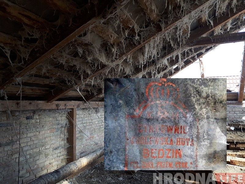 У доме на вуліцы 1 Мая 2/1 у верасні 2018 года пачалі мяняць дах. Будаўнікі выявілі на адным з лістоў бляхі польскае кляймо з надпісам “cynkownie królewska huta Będzin”. Расказваем, што яно абазначае.