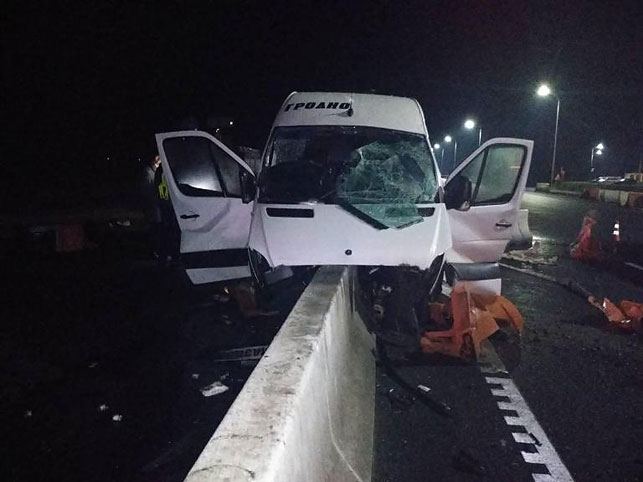 Аварыя здарылася 18 кастрычніка, каля 19.40, на 74-кіламетры дарогі Мінск-Гродна. Кіроўца, 46-гадовы гродзенец, не ўлічыў абставіны на дарозе, інфармуе СК. У выніку маршрутка сутыкнулася з бетоннай агароджай. Два чалавекі загінулі: 66-гадовая жанчына на месцы, 71-гадовы мужчына – у шпіталі. Шпіталізаваныя 13 пасажыраў і кіроўца.