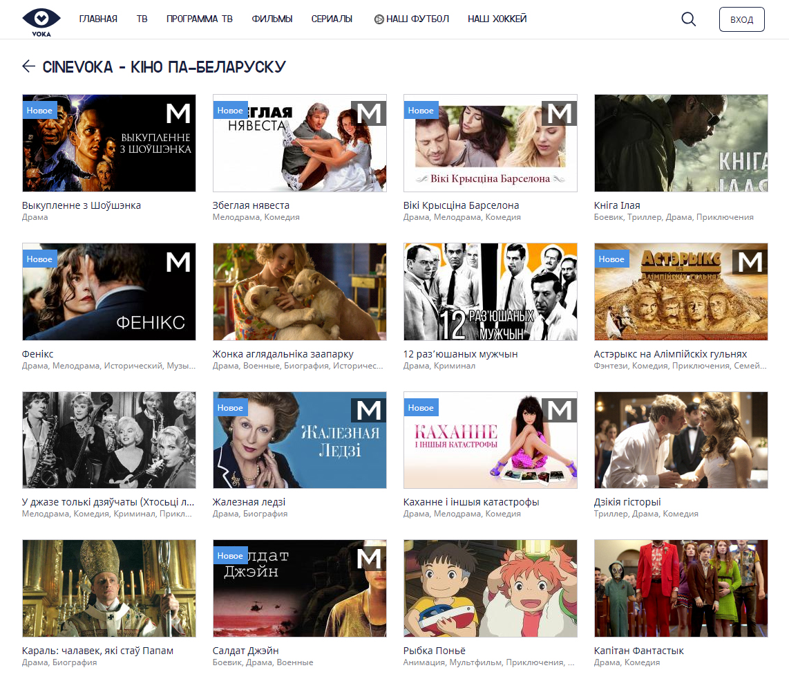 Беларусы ўжо прызвычаіліся глядзець кіно ў беларускай агучцы ў кінатэатрах – дзякуючы праекту «Беларускія ўікенды», які рэалізуецца кампаніяй «Кінаконг» пры падрымцы velcom, вядомыя фільмы і нават прэм’еры з беларускім дубляжом штомесяц паказваюць на вялікіх экранах па ўсей краіне. Але дагэтуль не існавала адзінай платформы, дзе можна было б знайсці і паглядзець фільмы і мультфільмы ў беларускай агучцы анлайн. VOKA вырашылі выправіць гэтую недарэчнасць і стварылі раздзел CINEVOKA , які на дадзены момант складаецца з 50 кінастужак у беларускай агучцы – ад драм і баевікоў да анімэ і мультфільмаў.