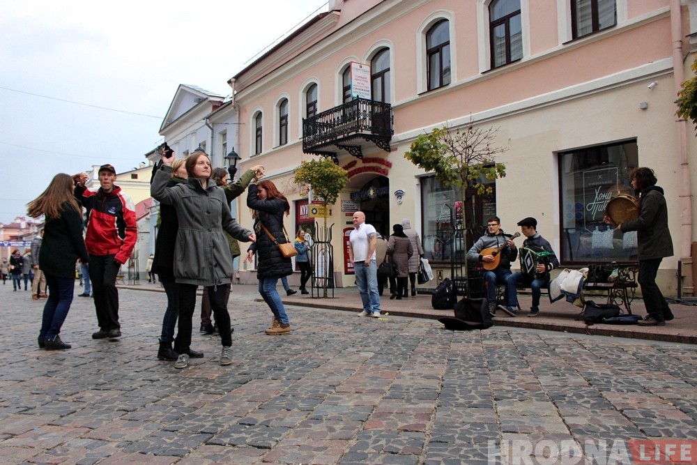 Увечары 27 кастрычніка ў “Цэнтры гарадскога жыцця” пройдзе міжнародная танцавальная сустрэча “Дзень і ноч танцаў”. Напярэдадні маштабнага мерапрыемства музыканты і танцоры з літоўскай Клайпеды зладзілі ў цэнтры Гродна невялікі канцэрт і прымусілі гараджан танцаваць.