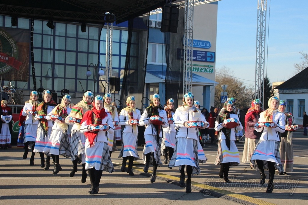 Конкурсныя караваі з разнастайнай аздобай, батонавае дрэва, жанчына-стол, інсталяцыі з яблык і гарбузоў, бульбяны конь і скокі з караваямі – “Дажынкі” пакрысе ператвараюцца ў адмысловы фэст ежа-арту. Канешне не абышлося і без звыклых ужо для афіцыйных “Дажынак” скульптур – саламяных лялек з пукатымі вачыма, дзедаў ды бабак на вазах і г.д. Глядзім падборку фота, як гэта было сёння ў Іўі.