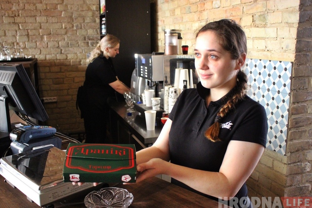 “Мы будзем прадаваць традыцыйную беларускую кухню, – распавядае загадчыца кафэ Таццяна Кульбей. – Асноўны ўпор робім на дранікі, паспрабуем іх зрабіць найлепшымі ў горадзе. Гатуем іх па нашых сакрэтных тэхналогіях, як звычайныя, так і з курыцай і ялавічынай. Іх асаблівасць у тым, што ўсе стравы падаюцца з жару – будзем гатаваць для кожнага кліента, а не проста разаграваць. Акрамя гэтага мы можам прапанаваць пяльмені ручной лепкі, шэсць відаў уласнай вытворчасці марожанага і бельгійскія вафлі.