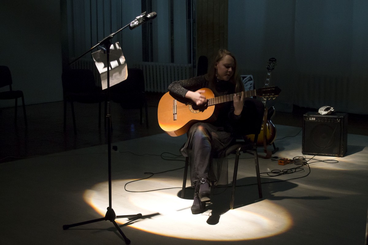 У вялікай белай зале цемра. Святло толькі ў колах ад пражэктараў. Мікрафон, некалькі крэслаў, гітары і мікшэры – нічога не адцягвае ўвагу ад творчасці і музыкі. Так працуе свабодная музычная прастора Gimme Danger.