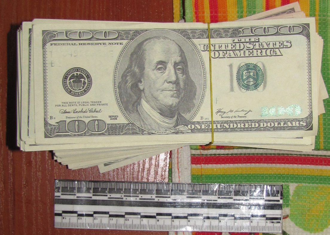 Пры правядзенні ператрусу па месцы жыхарства падазраваны добраахвотна выдаў супрацоўнікам міліцыі 15000 долараў ЗША.