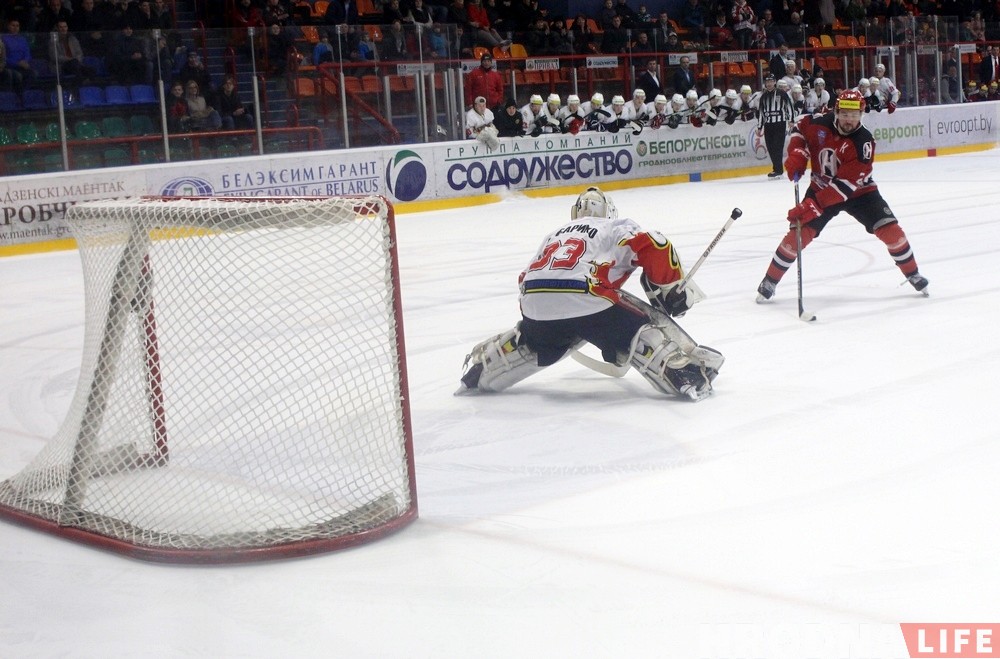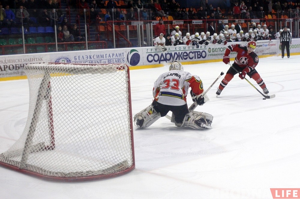 У адсутнасці лідэраў каманды, якія адправіліся на матч супраць мінскага «Дынама», у Гродне 26 лютага падапечныя Сяргея Пушкова апынуліся мацней за «Гомель». Асноўны час матчу скончыўся з лікам 3:3. Зыход сустрэчы вырашылі буліты, вырашальную шайбу закінуў Коршунаў.