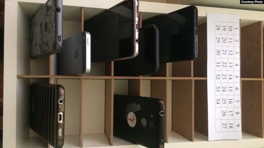 Тэлефоны зьбіраюць у скрыні перад урокам і аддаюць на перапынках
