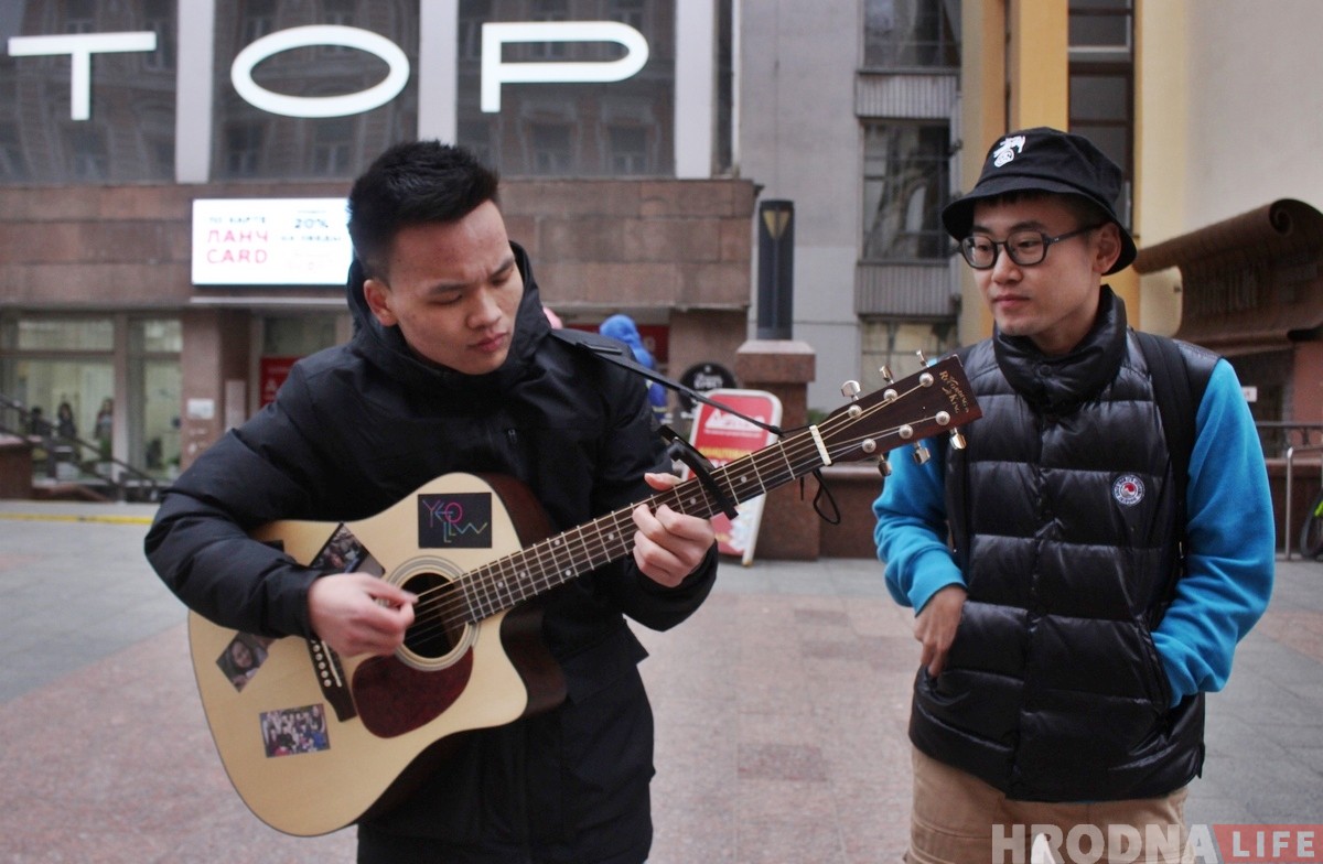 Хлопцы вучацца ў ГрДУ. Сіньюэ другі год, а Эньцзян першы. Студэнты выступалі ў цэнтры Гродна ўпершыню.