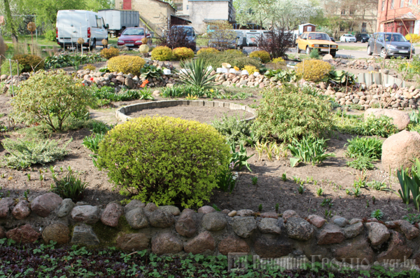 З упрыгожваннем ландшафту дапамагалі работнікі УЖРЭП. Такой колькасці раслін патрэбен пастаянны паліў, ваду прыходзіцца браць з крана, а гэта дадатковыя выдаткі. Пенсіянерка хадзіла ў гарвыканкам з просьбай падвесці сюды крыніцу вады – пакуль рэалізаваць ідэю не ўдалося.