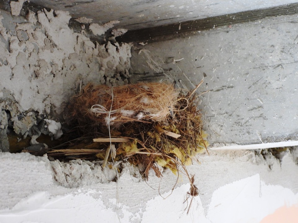 Будаўнік расказаў, што гняздо з птушкай знайшлі тры дні таму і спадзяваліся, што яна выляціць. Але птушка вылятала і вярталася. А будаўнікам трэба скончыць зацягваць столь над вакном і больш яны чакаць не маглі. “Забярыце гняздо ў лес або перанясіце куды-небудзь”, – прасілі яны.