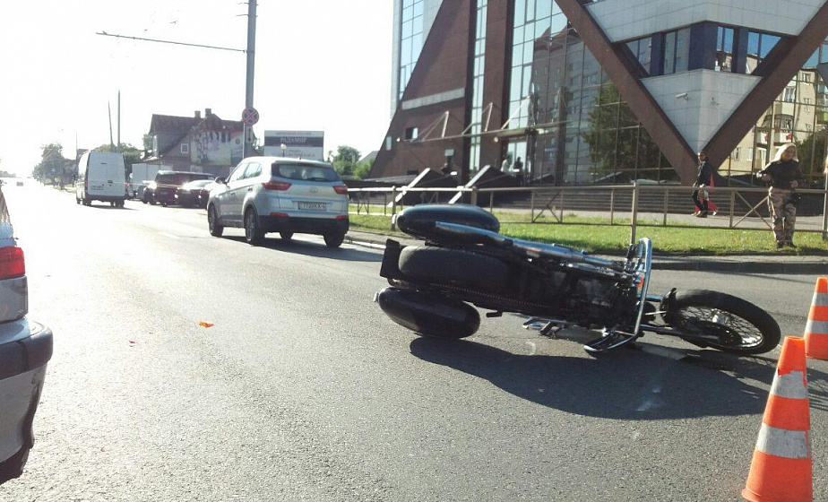 У выніку аварыі матацыкл лёг на бок, у яго нязначныя пашкоджанні, у машыны разбітыя бампер і фара.