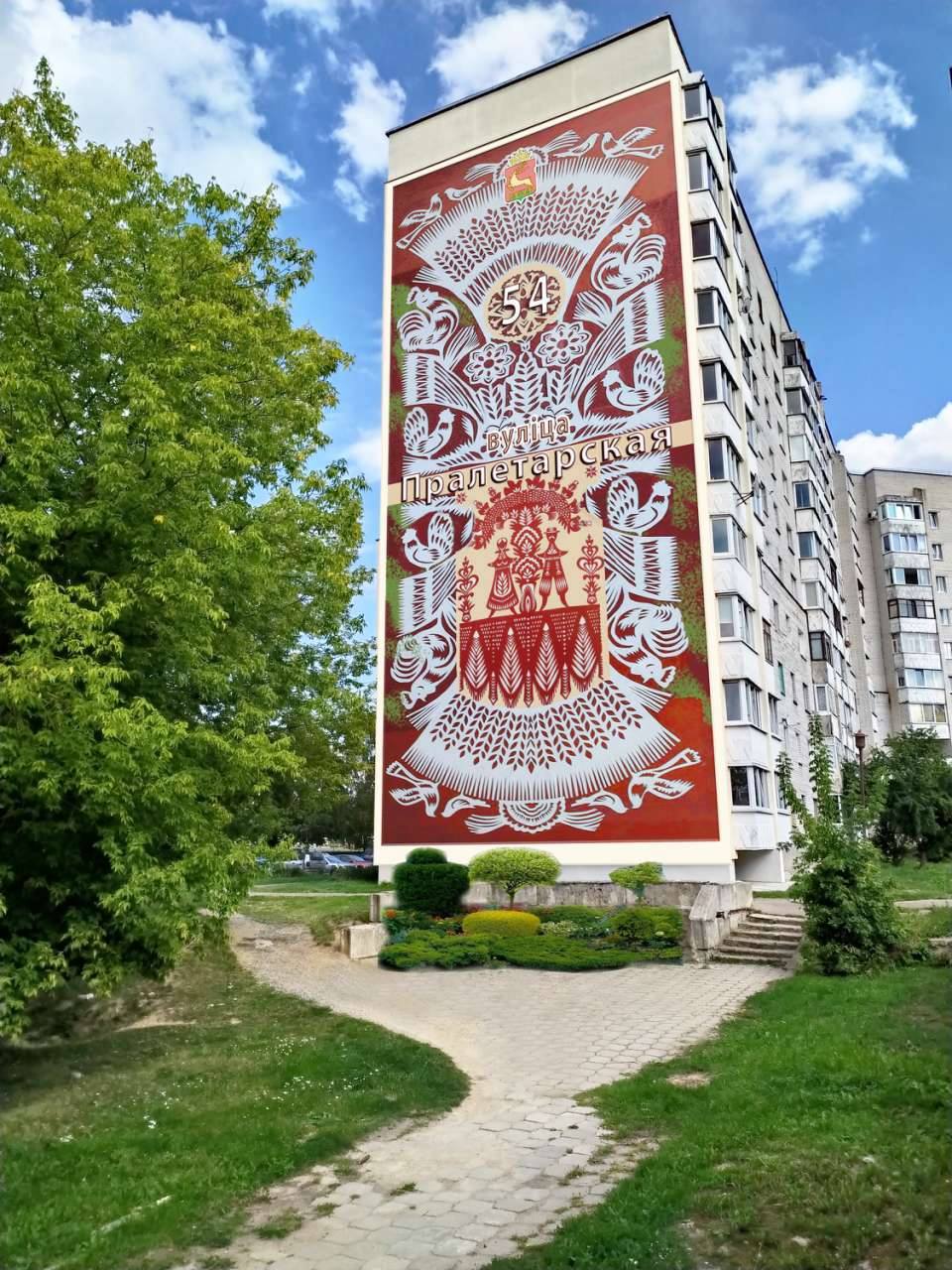 Прыклады дзясяткаў яскравых муралаў на сценах дамоў можна пабачыць у суседнім Беластоку. Яны сталі там знакамітасцю і турыстычнай атракцыяй. Ёсць там і мурал у стылі выцінанкі – на вуліцы Звежынецкай, насупраць інтэрнатаў Палітэхнікі.