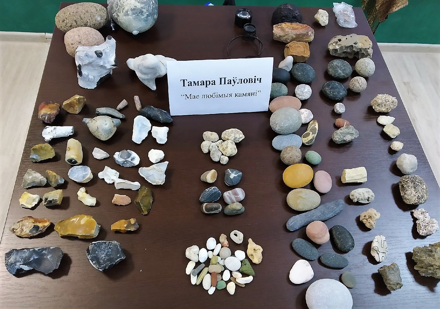Тамара Паўловіч, у мінулым геолаг, прадставіла калекцыю камяней: «Камяні мяне прыцягваюць. У іх схаваны ўвесь наш гістарычны шлях». У яе калекцыі ёсць камяні з усяго свету, а таксама шмат камянёў з Беларусі. Адзін з незвычайных экспанатаў яе калекцыі – аскепак Пампеі, горада,