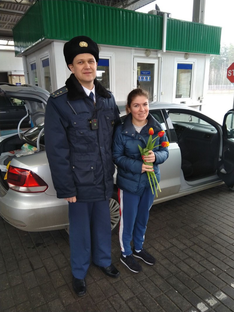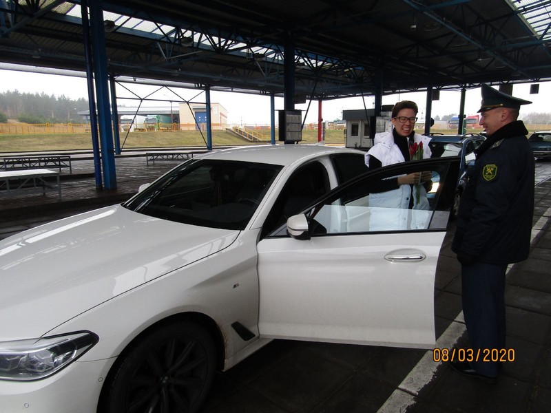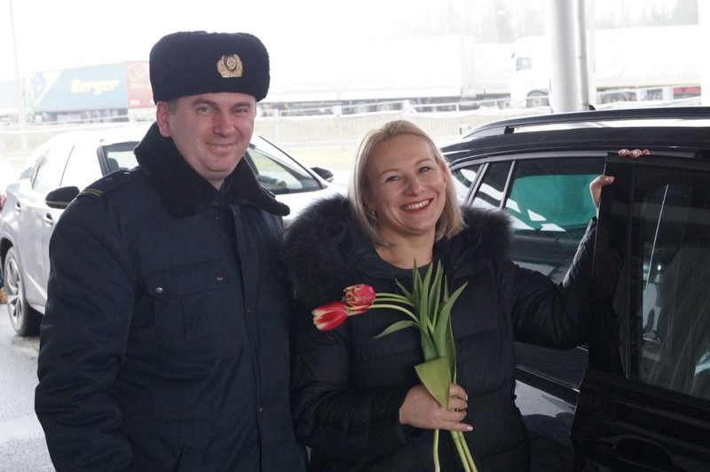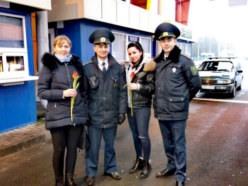 У Міжнародны жаночы дзень, 8 сакавіка, больш за 150 жанчын атрымалі кветкі пры перасячэнні беларускай мяжы. Так па традыцыі віншуюць беларусак і турыстак гродзенскія мытнікі.