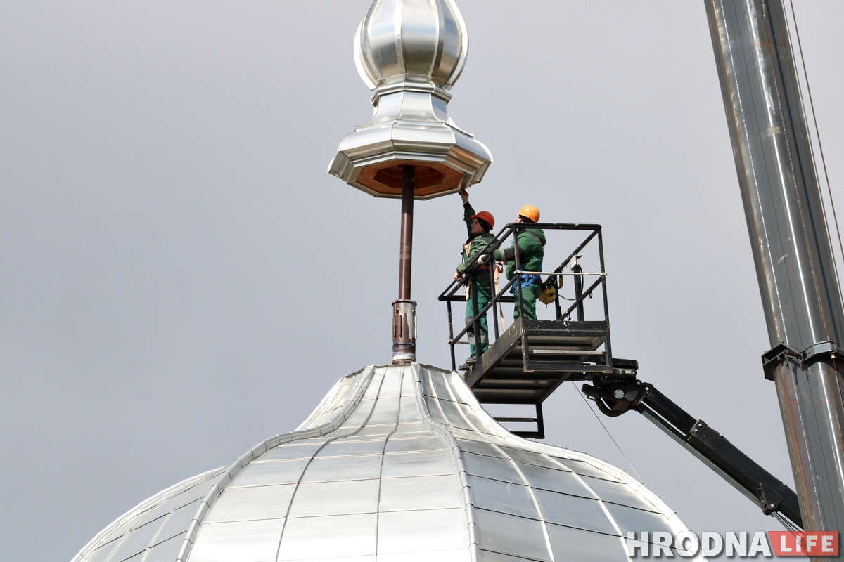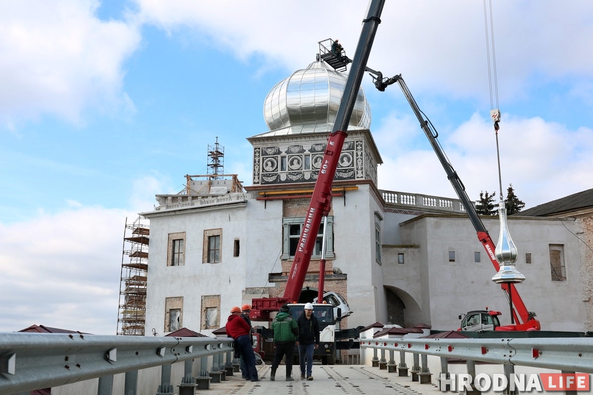 У аўторак 17 сакавіка на купал уязной вежы Старога замка паставілі шпіль. Ужо можна ўбачыць, як гэта выглядае цалкам.