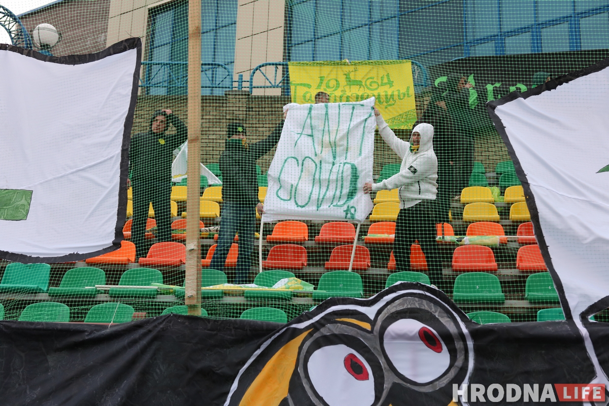 «Беларусь сёння адзіная краіна, дзе гледачы могуць прыйсці на футбол і заўцець за любімую каманду, – распавядае адзін з лідараў фан-руху “Нёмана” Павел. – Афіцыйна ў нас каранцін не аб’яўлены, таму мы спакойна прыходзім на стадыён. Мы зрабілі на сектары невялікі перформанс у падтрымку ўсіх заўзятараў, якія вымушаныя сёння сядзець дома. Таксама мы хочам паказаць свой пратэст супраць гэтага каранавіруса. Супраць гэтай брыдоты, якая ўзяла ўсю нашу планету. Свет перажыў шмат праблем і гэтую перажывем таксама. Галоўнае – заставацца людзьмі і верыць у светлую будучыню. Увесь свет – трымайцеся, мы з вамі. Сёння мы заўзеем за ўсіх вас».