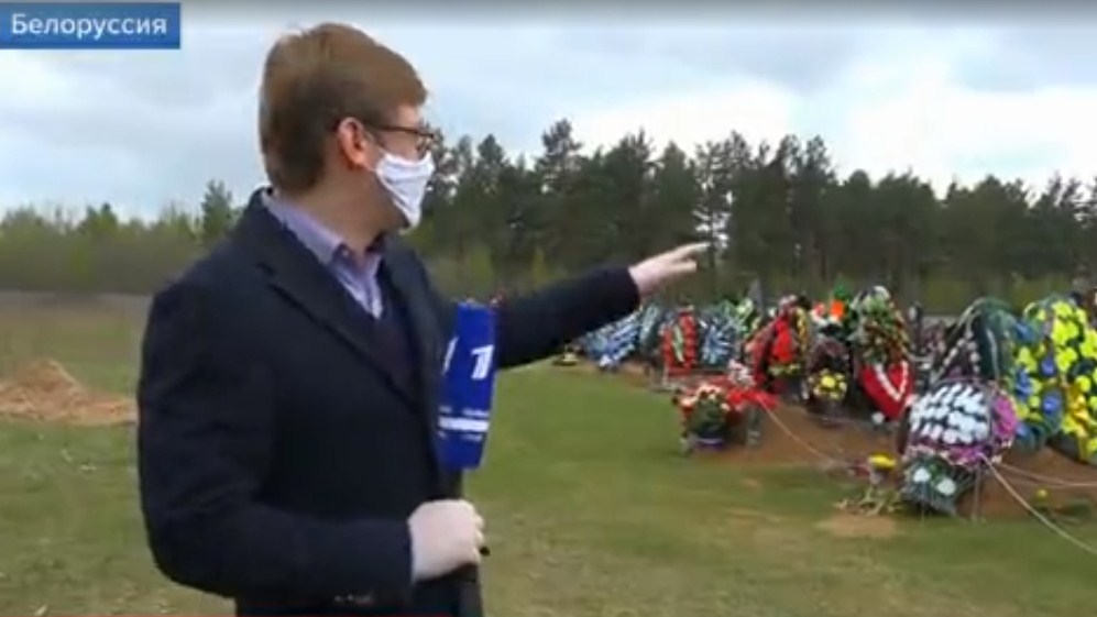 Расейскі «Первый канал» 6 траўня раніцай выдаў у эфір сюжэт пра складаную эпідэміялягічную сытуацыю ў Беларусі. Матэрыял называўся «Правядзеньне масавых мерапрыемстваў прывяло да рэзкага пагаршэньня віруснай сытуацыі ў Беларусі». Расейскі журналіст Аляксей Кручынін наведаў Стоўпцы. Сюжэт распавядаў аб “рэзкім пагаршэнні сітуацыі з каранавірусам” у Беларусі. Таксама адзначалася што “афіцыйная статыстыка ў мясцовых жыхароў не выклікае даверу”, у якасці ілюстрацыі журналісты знялі панараму мясцовых могілак.