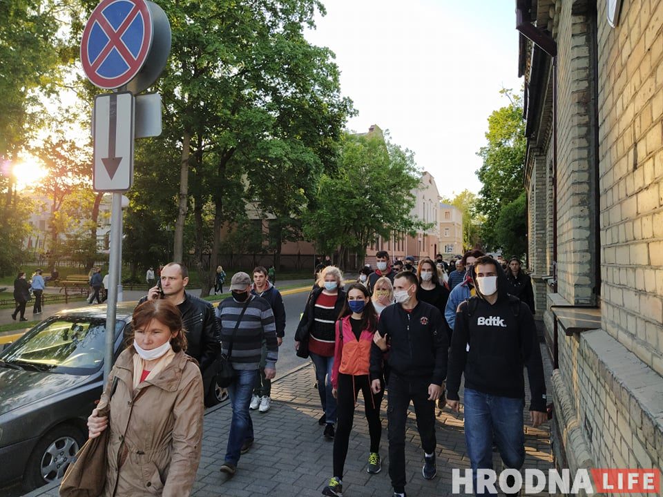 Пад будынкам абласной міліцыі сабралася каля 100 чалавек. Адзін з удзельнікаў пікету Мікалай Салянік размаўляе пра затрыманне Ціханоўскага з палкоўнікам Аляксандрам Шастайлам, першым намеснікам начальніка УУС аблвыканкама, начальнікам крымінальнай міліцыі.