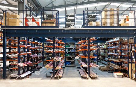Мезонинные стеллажи – это многоуровневая конструкция, с помощью которой складское пространство заполняется по максимуму. Здесь все очень просто: используются металлические рамы, где располагаются настилы, которые могут быть выполнены как из перфорированного и гофрированного, так и гладкого металла. Подобные конструкции могут применяться в разных складах. Особенно это касается тех, которые принадлежат торговым компаниям. Но и для промышленных предприятий они отлично подходят.
