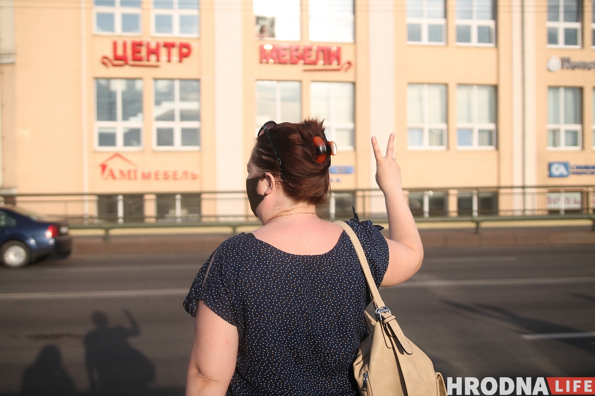 А 19:45 ланцуг стаў доўжыцца і на Савецкую вуліцу. “Я выйшла падтрымаць нашую краіну. Мяне ўсё задавальняе, не задавальняе наша ўлада,” – кажа гродзенка.