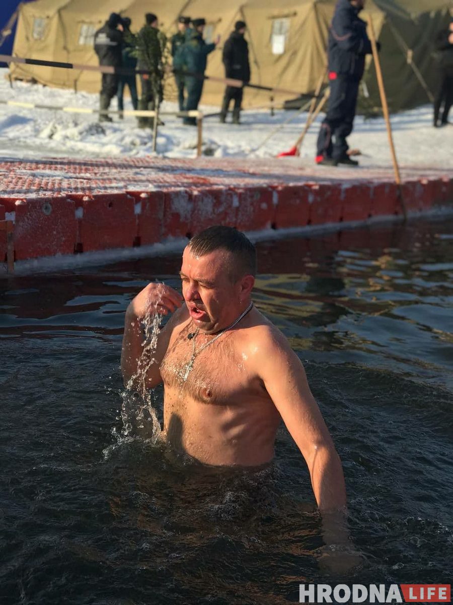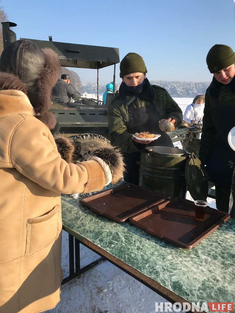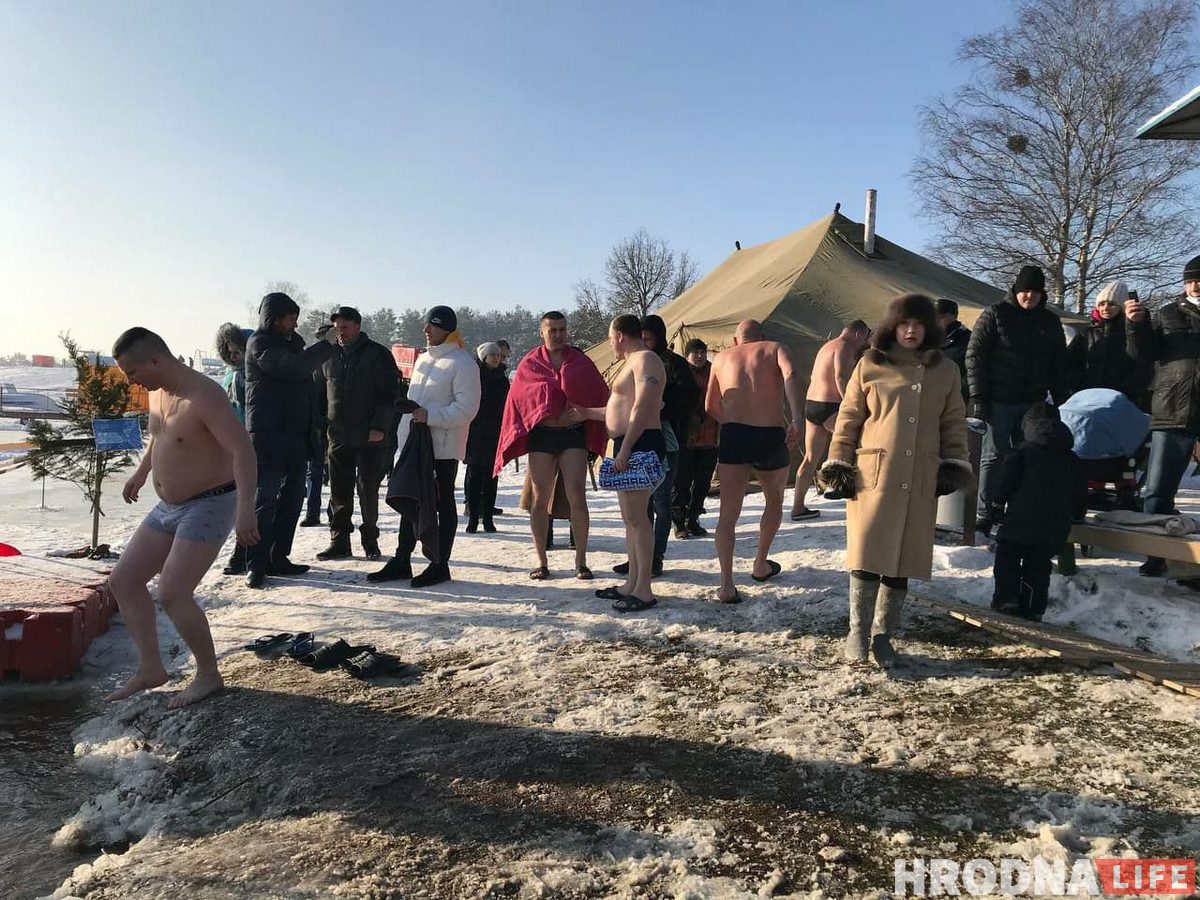 Для жадаючых акунуцца паставілі два намёты, асобныя для мужчын і жанчын, з печкай- буржуйкай, дзе можна было пераапрануцца і абагрэцца. Побач частавалі салдацкай кашай і гарбатай. За правядзеннем мерапрыемства назіралі супрацоўнікі МНС.