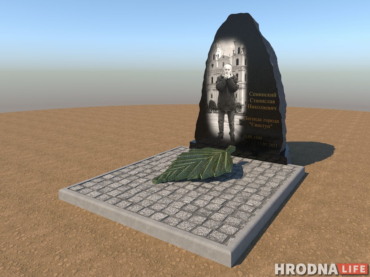 Эскіз будучага помніка на магіле вядомага вулічнага музыкі гатовы. Усталююць яго не раней восені 2021 года. Вырабам і ўсталёўкай надмагілля зоймецца Гродзенскі камнеапрацоўчы завод.