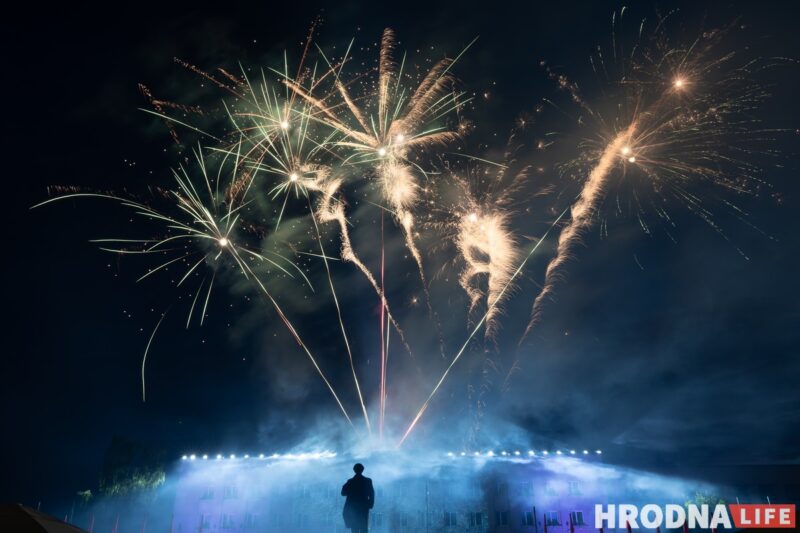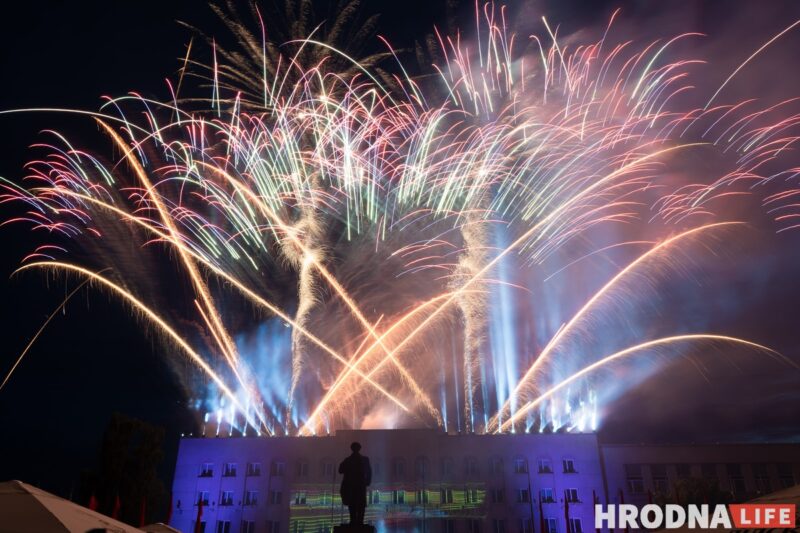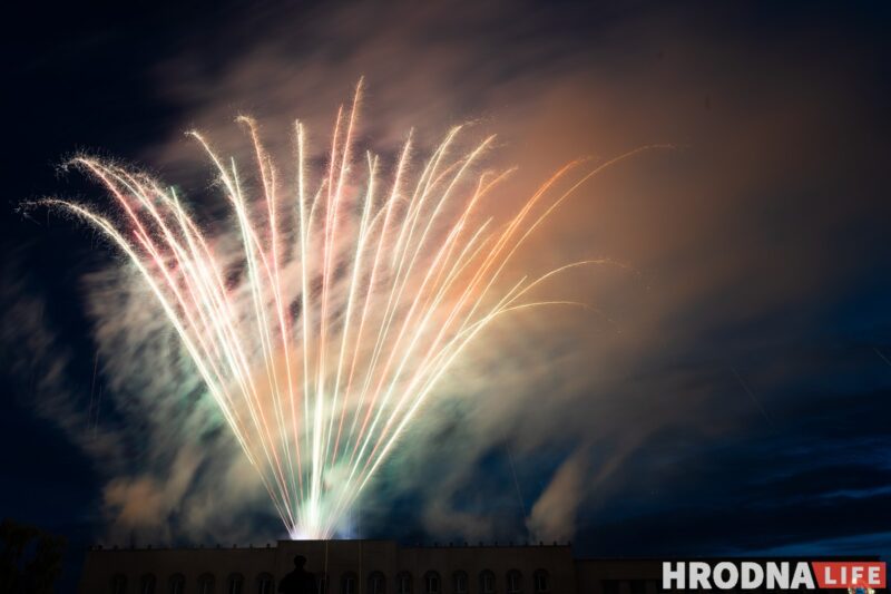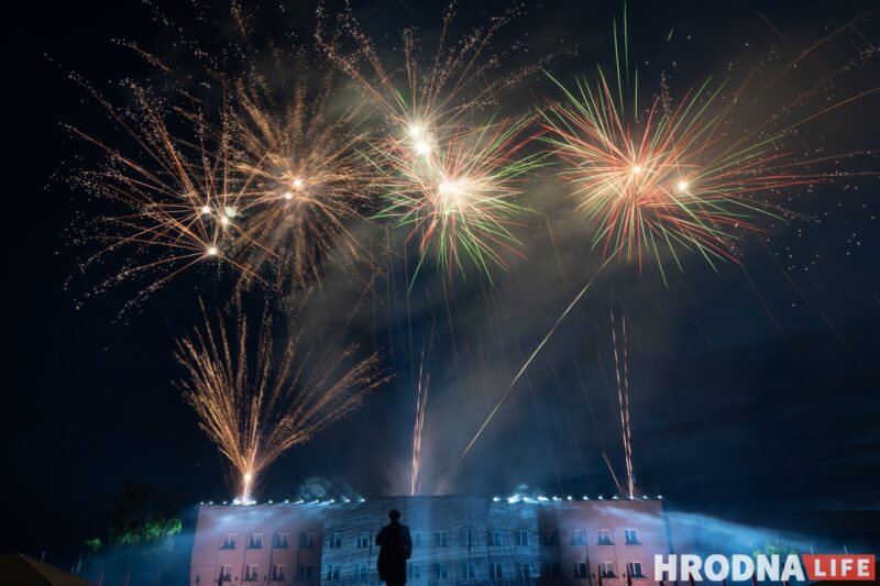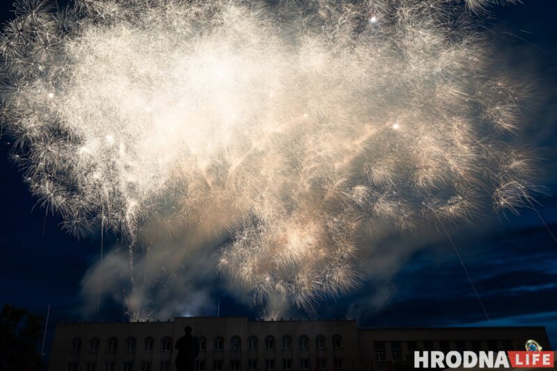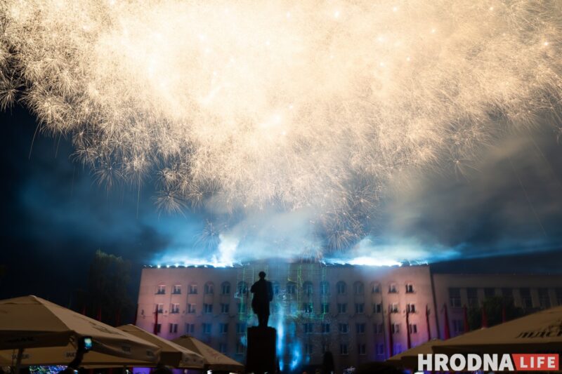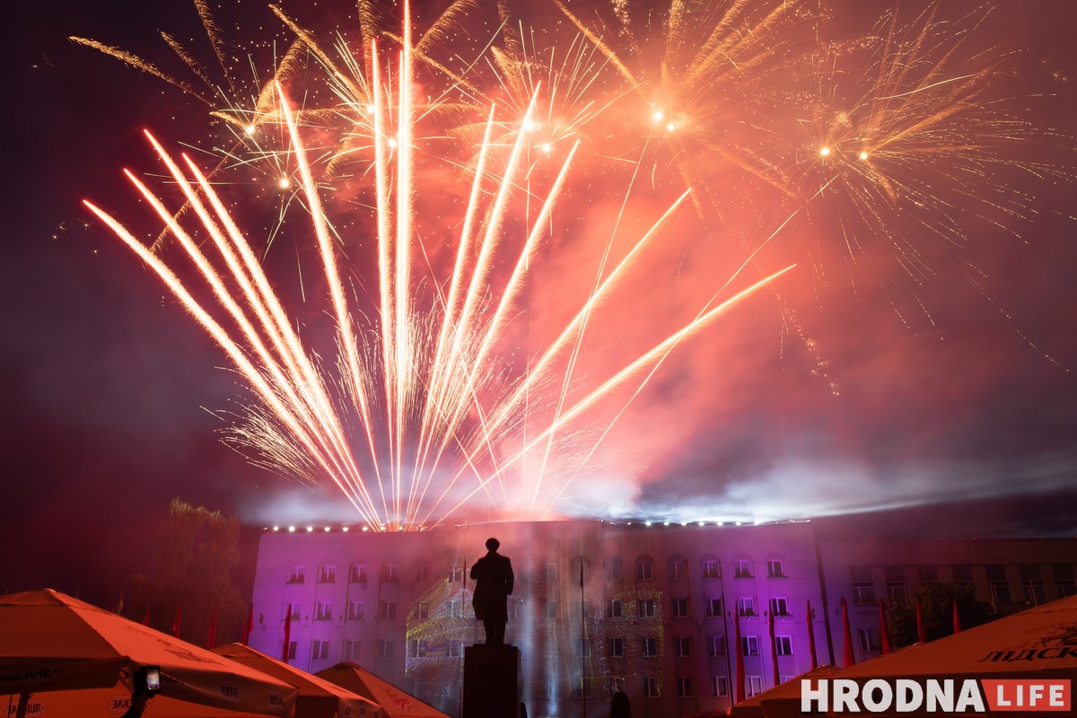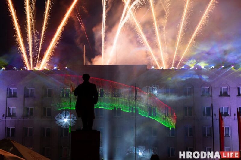 Святкаванне Дня незалежнасці 3 ліпеня ў Гродне завяршылася салютам і светлавым шоў. Сёлета салют запускалі з даху гарвыканкама, а на сцяну будынка праектавалі лазерныя выявы. Салют разам з лазерным шоў каштаваў гораду 12 390 рублёў. Глядзіце, як гэта было ў фотарэпартажы Hrodna.life.