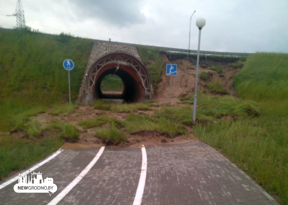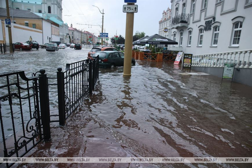 У цэнтры Гродна дождж затапіў вуліцу Калючынскую і Маставую. Колы транспарта былі напалову ў вадзе. На вуліцы Захарава затапіла вырытую для замены цяплавых сетак траншэю. Вуліцу Белуша затапіла разам з тратуарамі, на ёй на пэўны час цалкам спыніўся рух. У мікрараёне Вішнявец падчас залевы затапіла вуліцу Паўднёвую.