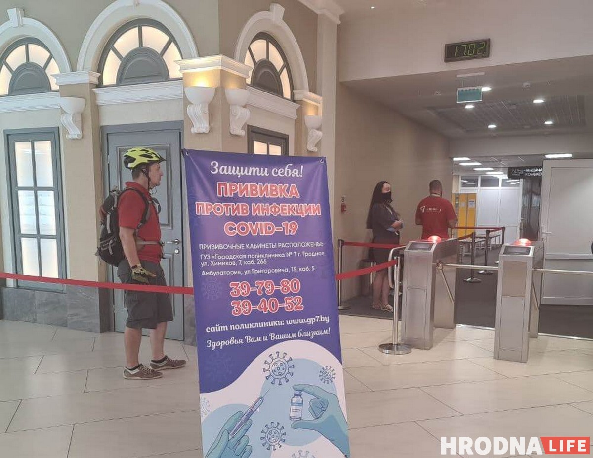 З 16 ліпеня гродзенцы могуць зрабіць прышчэпку ад каранавируса не толькі ў паліклініцы па месцы жыхарства. Вакцынавацца можна паміж пакупкамі ў гандлёвых цэнтрах OldCity і Triniti. Журналісты Hrodna.life паглядзелі, як праходзіла вакцынацыя.