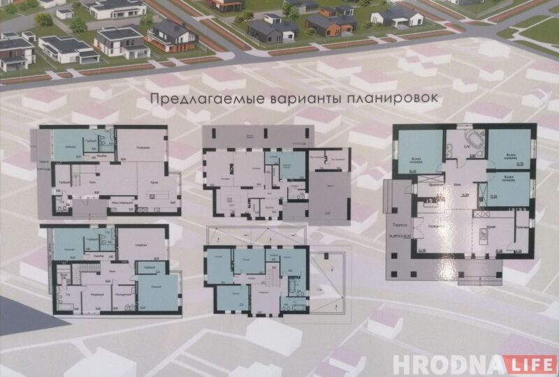 У таўнхаусах будзе тры спальні, кухня-гасцёўня і тэраса з боку двара. Некалькі варыянтаў планіроўкі і метражу ёсць для індывідуальных дамоў. Можна адразу набыць жыллё з рамонтам.