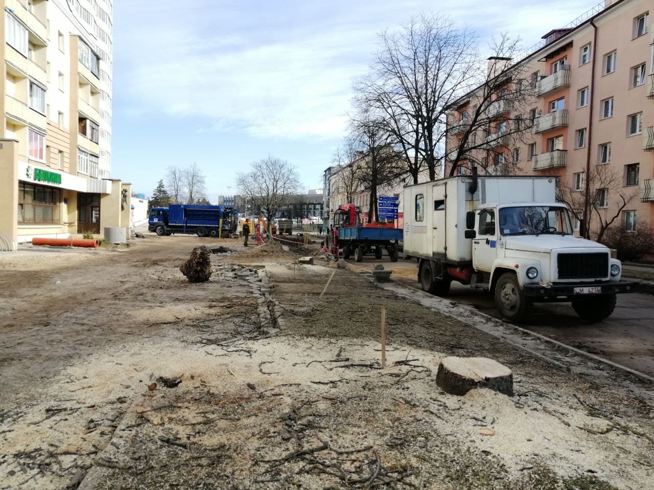 Спілованыя каштаны на вуліцы Ажэшкі. Крыніца: Тэлеграм-канал “Urban Hrodna”