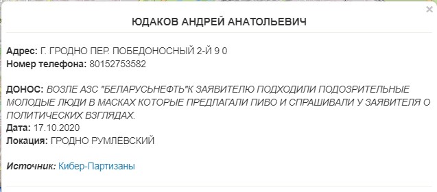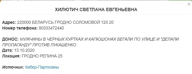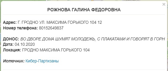 Каманда кіберпартызанаў дадала чацвёртую порцыю даносаў, інфармацыю аб іх аўтарах і змесце. Інфармацыя грунтуецца на дадзеных выклікаў 102 за кастрычнік 2020 года.