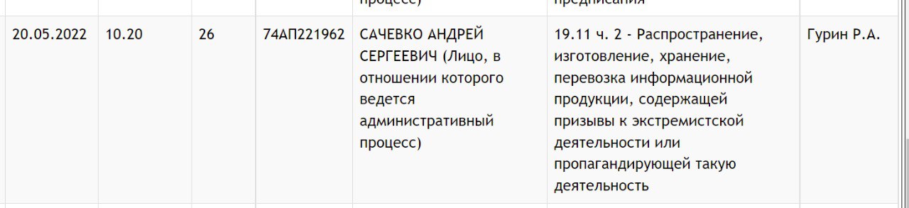 - Жыхара Ліды затрымалі за распаўсюд экстрэмісцкіх матэрыялаў. “Раней быў футбольным фанатам Ліды і прытрымліваўся неанацысцкіх поглядаў. Цяпер не прытрымліваюся ніякіх поглядаў”, – сказаў ён на камеру. Паводле версіі сілавікоў, ён “ўкараняў свае радыкальныя погляды іншым карыстальнікам, публічна дэманстраваў свастыку”. Яго дадзеныя і далейшы лёс невядомыя.