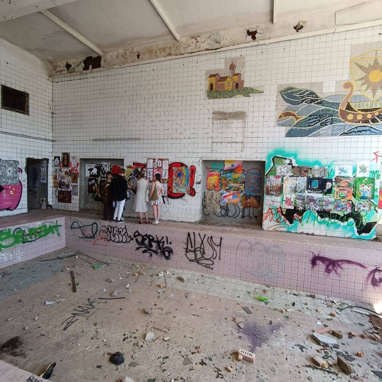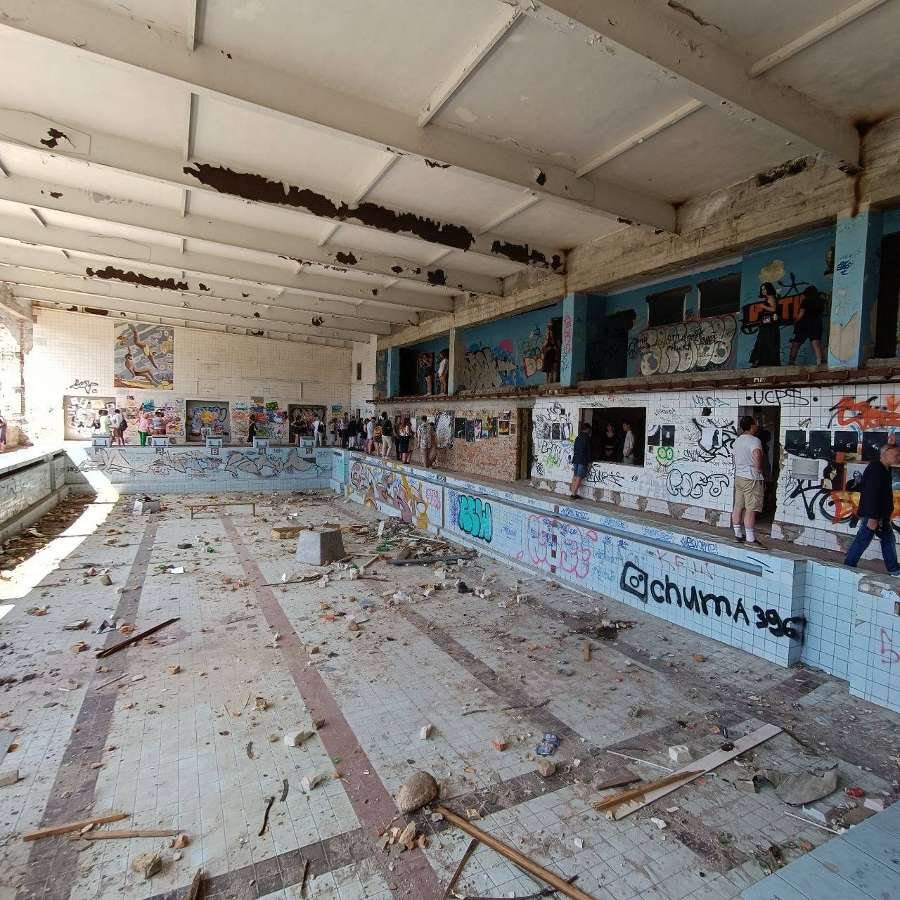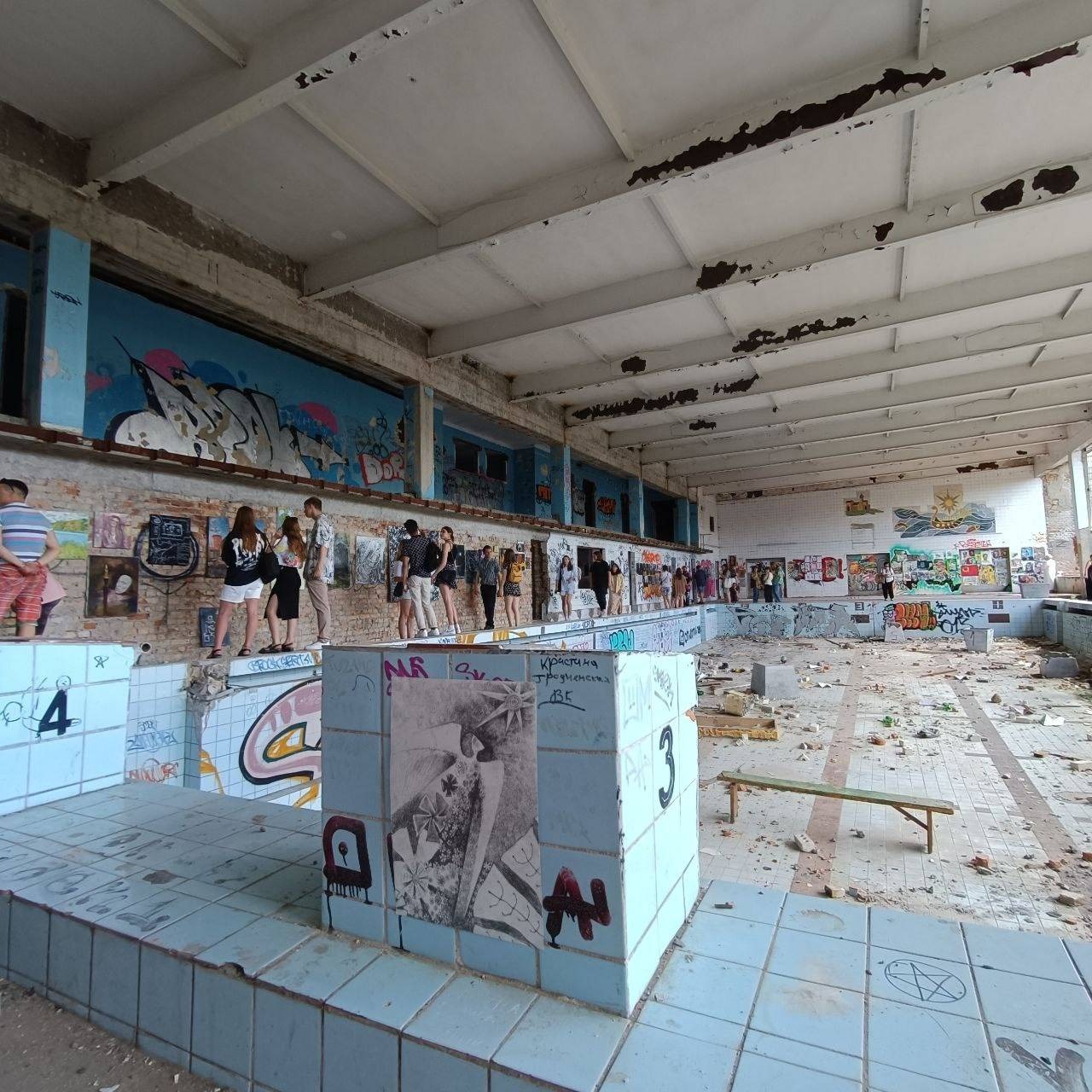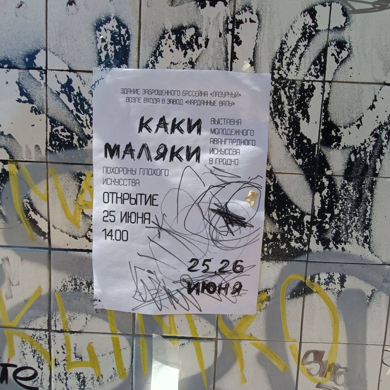 “Какі-малякі” – так стваральнікі назвалі выставу моладзевага авангарднага мастацтва. Карціны і фатаграфіі з’явіліся ў закінутым басейне “Лазурный” непадалёк ад завода карданных валаў. Мяркуючы па афішы, выстава будзе доўжыцца ўсяго два дні.