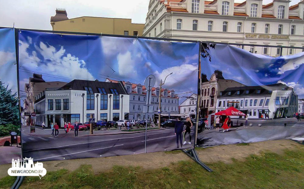 Праект будучага будынка размясцілі на банерах на плоце вакол будаўнічай пляцоўкі. Левая частка новага будынка, якая выходзіць на Савецкую, будзе знешне падобнай да страчанага аб’ёма канца XIX ст.. Правая, насупраць турмы, будзе з элементамі “мадэрна”, панарамнымі вокнамі і часткова празрыстым дахам.