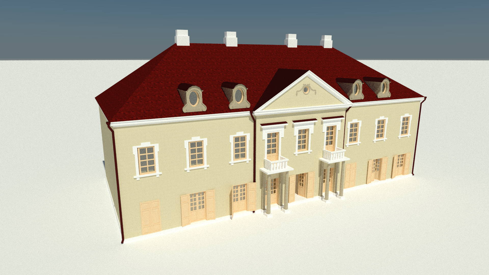 Камяніцы Вольмера (чырвоны колер) і Валовіча (сіні колер) канца XVIII ст. пасля пажару 1885 г. былі перабудаваны і ўключаны ў адзін вялікі аб’ём з надбудовай другога паверха (жоўты колер). Аўтар выявы – Мечыслаў Супрон