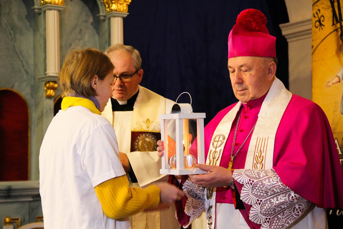 Як і летась, скаўты перадалі біскупа агонь не ўрачыста ў час вячэрняй імшы, а да яе. На перадачы вагню прысутнічалі ўсяго некалькі дзясяткаў чалавек.