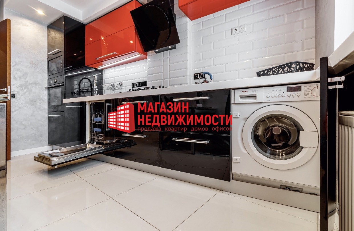 У кватэры – высокатэхналагічны рамонт, удалая планіроўка і цёплая падлога. На кухні сістэма дадатковай ачысткі вады з асобным кранам і зменнымі фільтрамі. Убудаваная бытавая тэхніка – вядучых вытворцаў (напрыклад, духавы шафу – ад Gorenje). Ёсць магутная выцяжка, посудамыйная машына і халадзільнік. У ванным пакоі сантэхніка вядучых вытворцаў.
