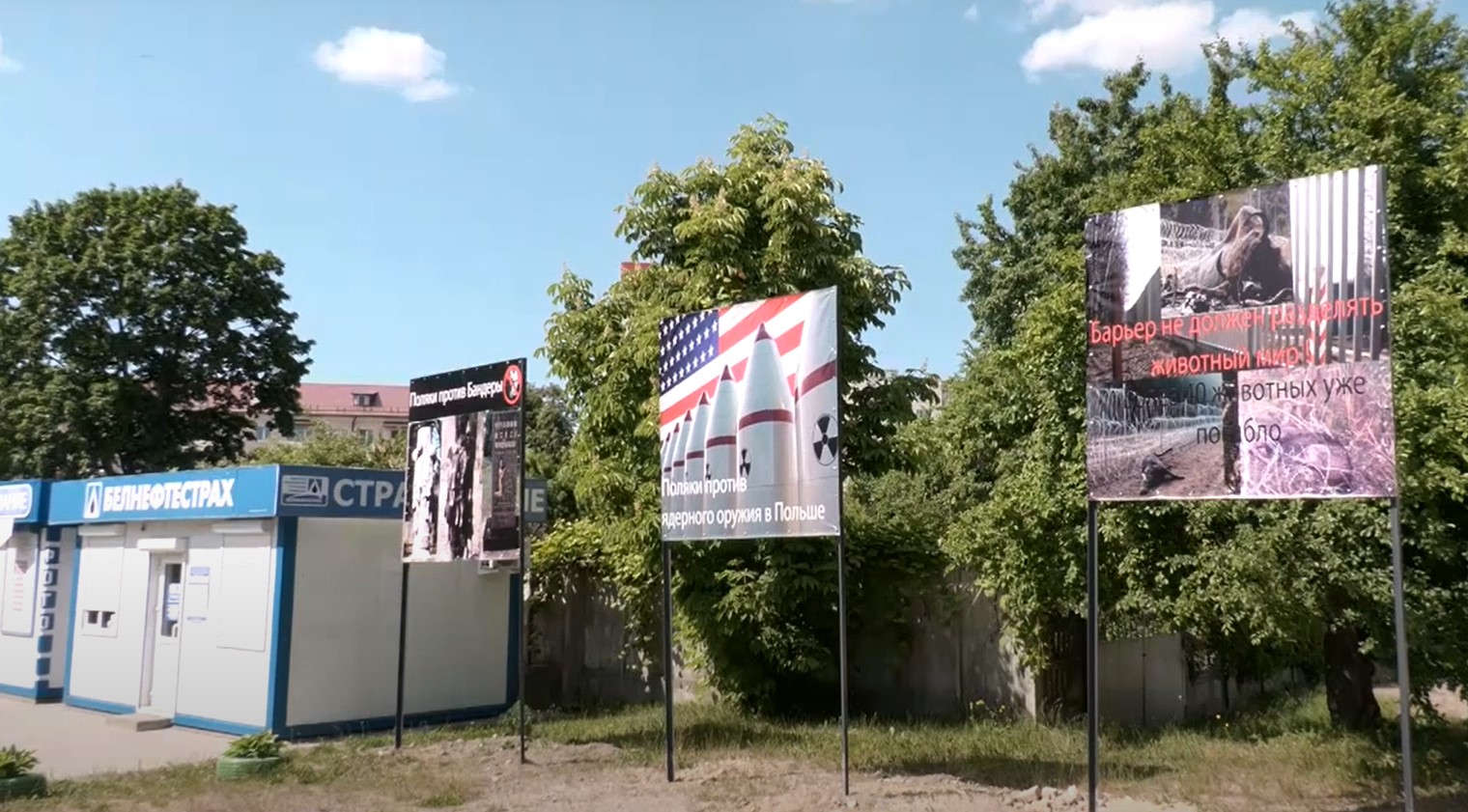 У Гродне насупраць будынка Генеральнага консульства Рэспублікі Польшча хтосьці расставіў стэнды, прысвечаныя плоту на мяжы, ядзернай зброі і… Бандэры. Праўладны тэлеканал сцвярджае, што іх паставілі “беларускія палякі”, нязгодныя з палітыкай польскага ўрада.