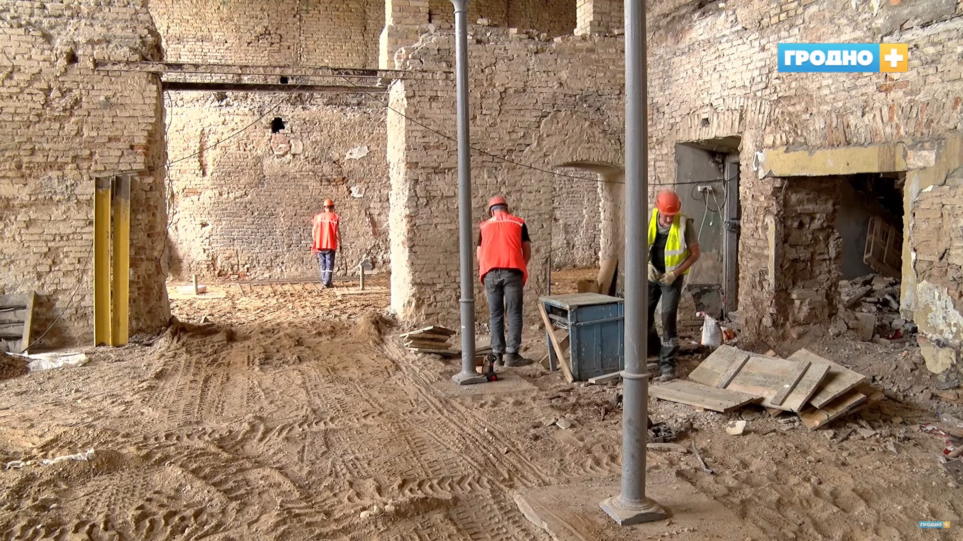 Ідуць працы ў асноўным корпусе. У частцы памяшканняў ужо залілі чарнавую падлогу для мантажу перакрыццяў, усталявалі балкі, закупілі ўсе неабходныя матэрыялы. Там, дзе магчыма, плануюць аднавіць гістарычныя зводчатыя перакрыцці.
