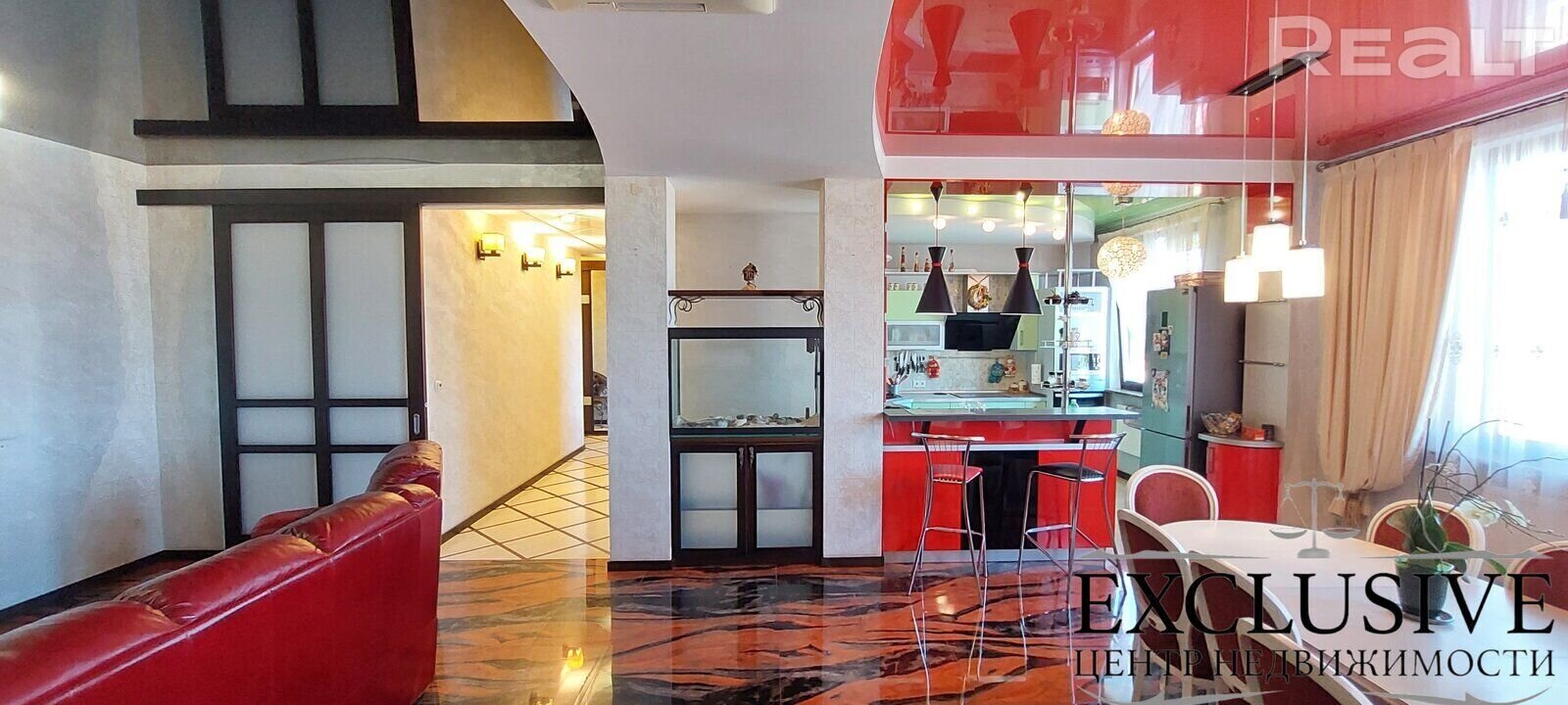У Гродне можна купіць трохпакаёвую кватэру на 130 “квадратаў”. Фішка кватэры – гасцёўня з выдзеленай зонай адпачынку: камінам, скуранымі канапамі і ТБ-цэнтрам. У кожным пакоі ёсць гукаізаляцыя.
