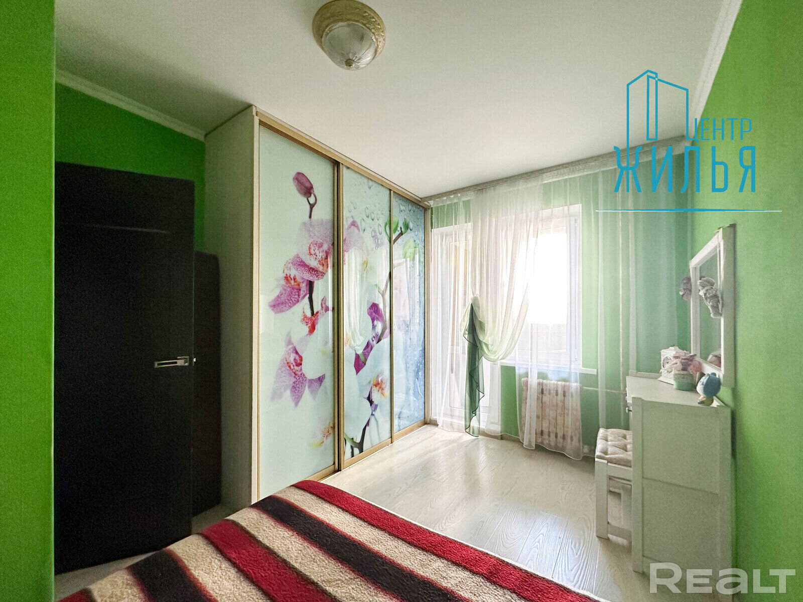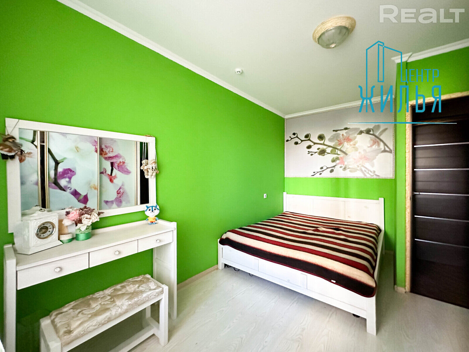 Кватэра прадаецца з усім змесцівам. Абяцаюць чысты пад’езд і добрых суседзяў. Дом размешчаны ў раёне з развітой інфраструктурай: вакол сетка крам і супермаркетаў, побач прыпынкі грамадскага транспарту, дзіцячыя садкі, школы, паліклініка. У двары дастатковая колькасць парковачных месцаў.
