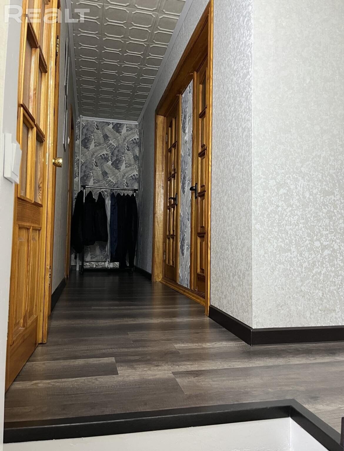 Гасцёўня выканана ў светлых танах. На кухні ёсць ярка-ружовыя акцэнты. У пакояў розны рамонт: дзесьці ён стрыманы, дзесьці – аранжавыя шпалеры ў буйны колер з фіялетавай канапай, у трэцім пакоі — фоташпалеры. Прыхожая – карычнева-жоўтая.