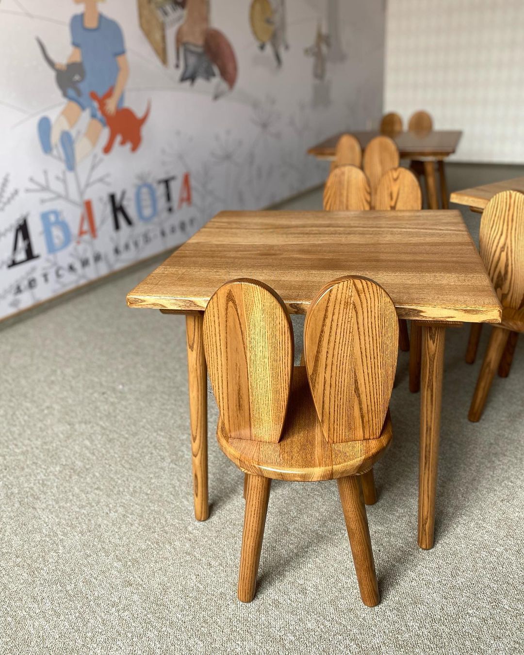 У BELKA STORE можна знайсці дзіцячую мэблю з масіва дрэва: перадусім, крэслы і сталы. Таксама ёсць драўляныя цацкі, грызункі для немаўлятаў і гульнявыя драўляныя трэнажоры. Усе вырабы ручной працы.
