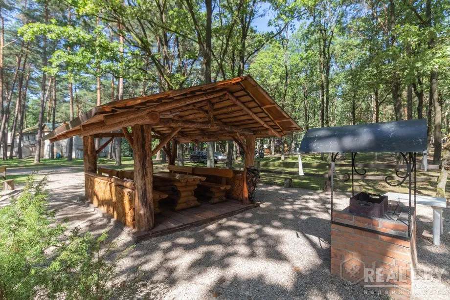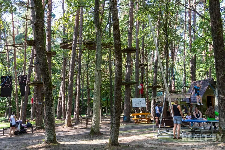 Асноўны будынак – двухпавярховы, цагляны. Акрамя яго, ёсць зактыты драўляны павільён плошчай 124 кв. м на 70 чалавек з камінам, альтанкі, тэнісны корт, мангалы, вяровачны экстрым-парк “Джунглі-парк”. Можна гуляць у лазертаг і пейнтбол.