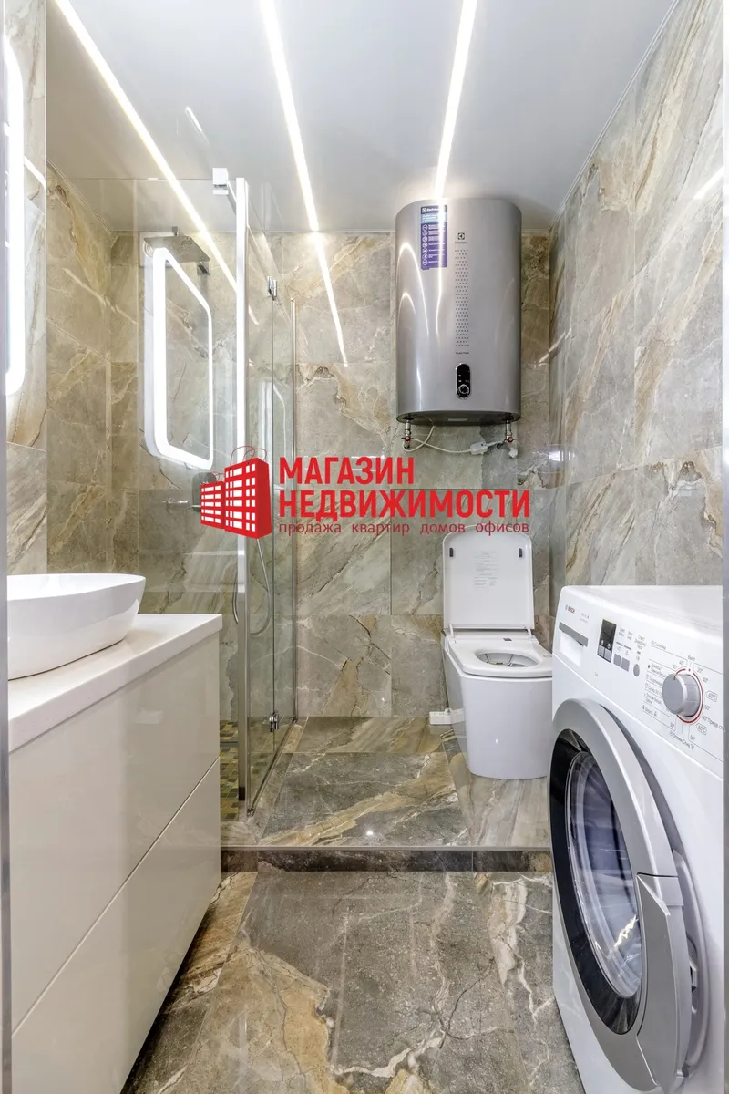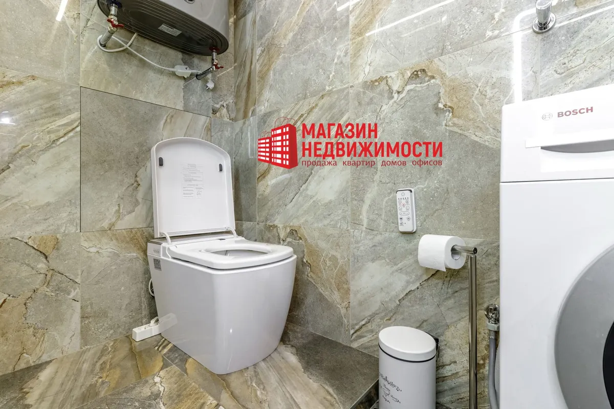 У Гродне па вул. Багдановіча, 6 прадаецца еўрадвушка з дызайнерскім еўрарамонтам і ўзаконенай перапланіроўкай. У санвузле тут разумны ўнітаз “Vello” з функцыяналам для гігіены і камфорту: падагрэвам сядзення, вакуумным змывам і аўтаматычным уздымам-апусканнем вечка. Кватэра прадаецца з усёй мэбляй і тэхнікай.