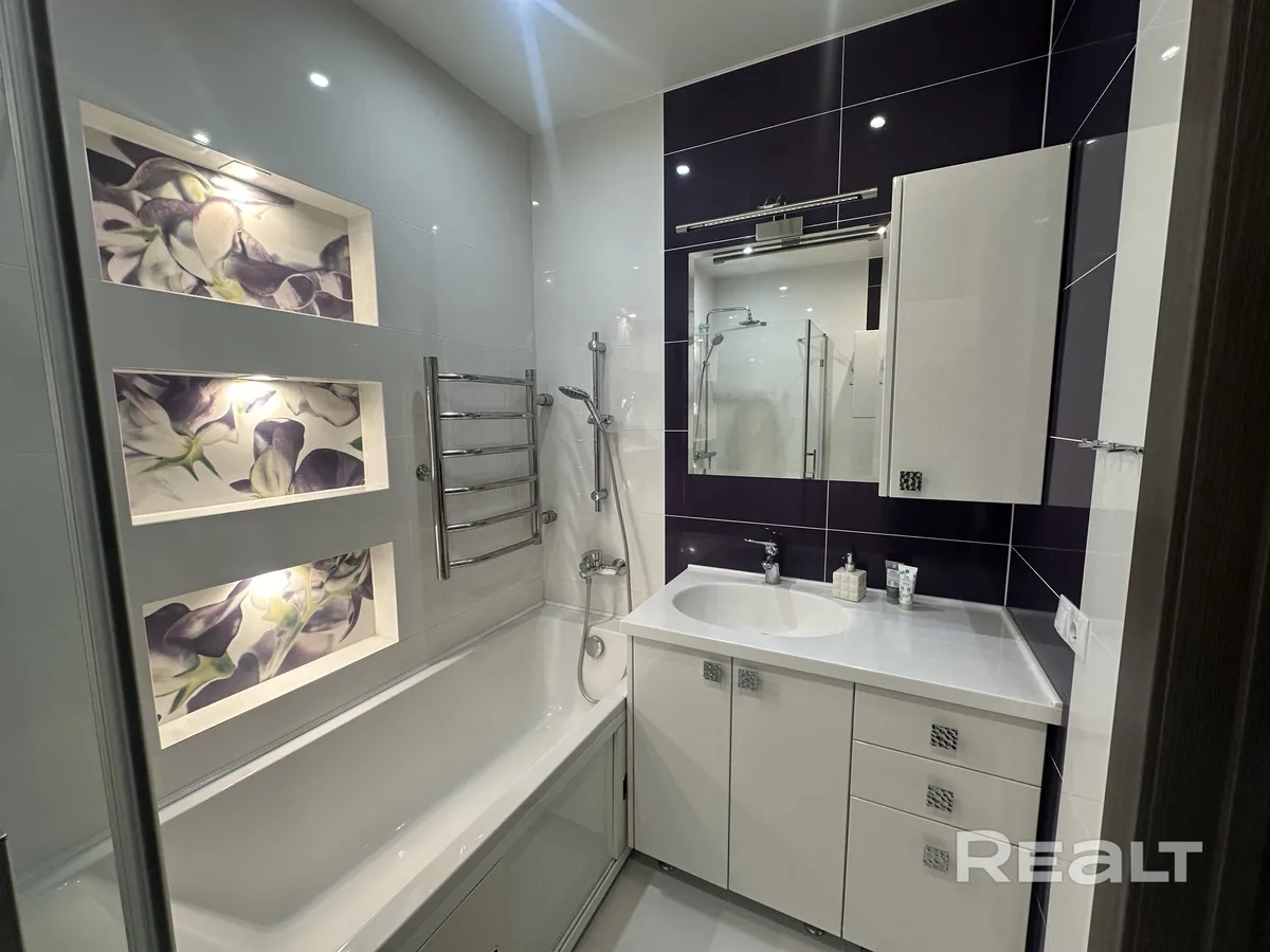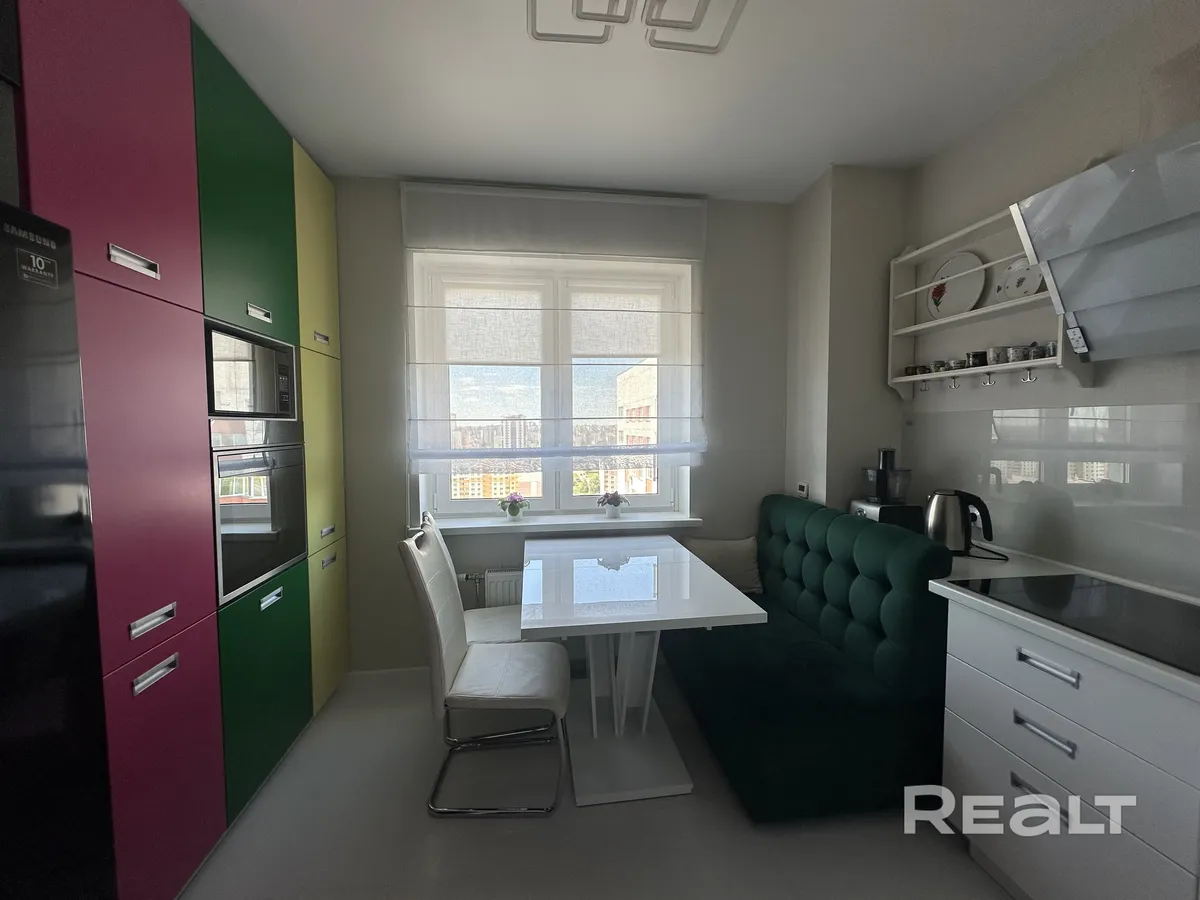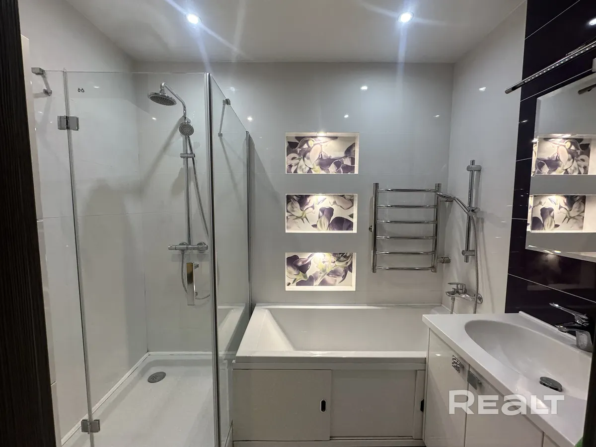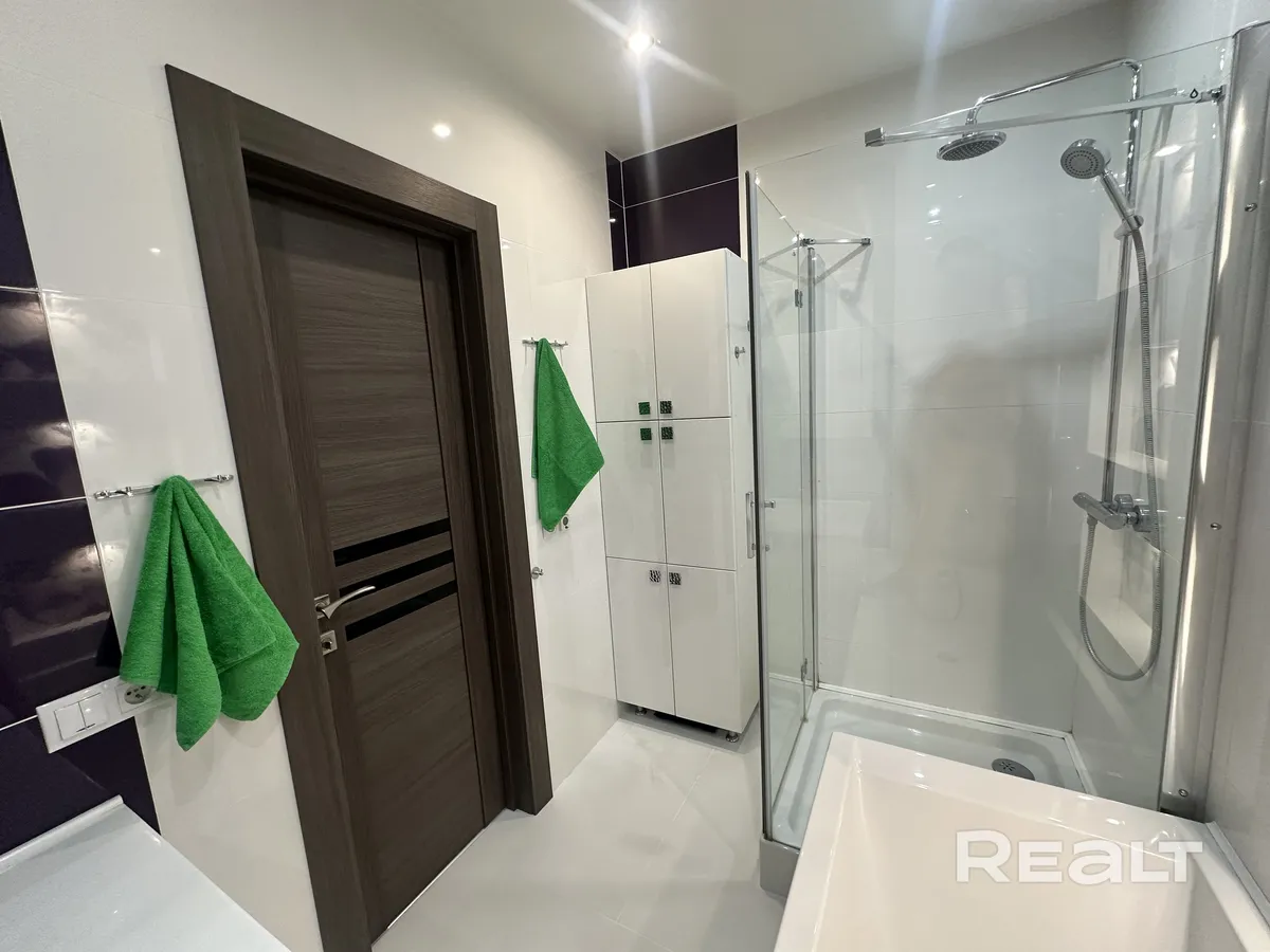 Агульная плошча – 77.5 м2. Кватэра знаходзіцца на апошнім паверсе 16-павярхоўкі па вул. Белыя Росы, 67. Санвузел – раздзельны. У ванным пакоі ёсць і ванна, і душавая кабіна. Ёсць лоджыя. Вокны выходзяць на двор.