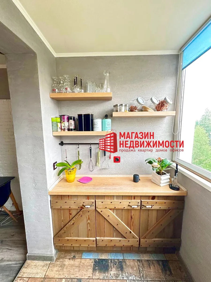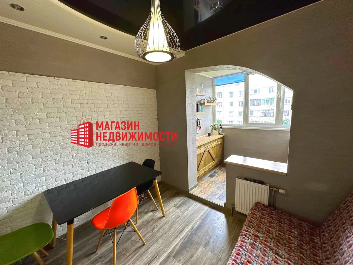 У Гродне прадаецца аднапакаёвая кватэра на вуліцы Шчорса. Кухню ў ёй павялічылі за кошт лоджыі на 2, 7 кв.м. Туды перанеслі пліту, мыйку і шафкі, фактычна зрабіўшы кухню гасцінай. Кватэра прадаецца з мэбляй і тэхнікай.